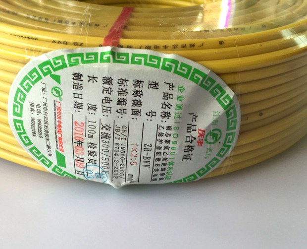 廣州慶豐電纜ZB-BVV阻燃B級(jí)家裝電線